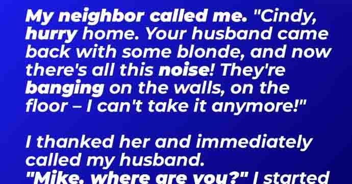 “Cindy, hurry home. Your husband came back with this blonde woman, and now there’s all this noise!” she said, her voice trembling.