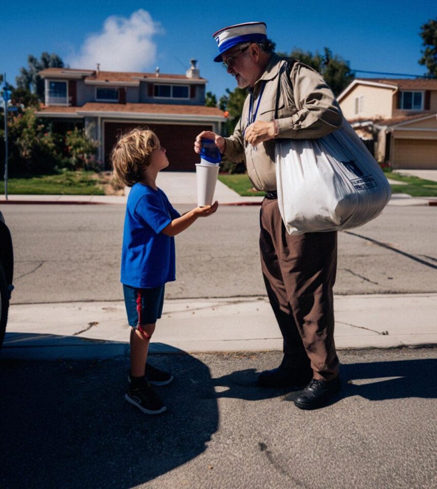 On a scorching afternoon, my five-year-old son Eli noticed a struggling mailman—sweaty, exhausted, dragging his heavy bag. Neighbors mocked him: Mrs. Lewis sneered about self-respect, teens jeered about poor choices, and Mr. Campbell taunted him to hurry. Eli, heartbroken, asked why they were mean. “Some forget kindness,” I said.