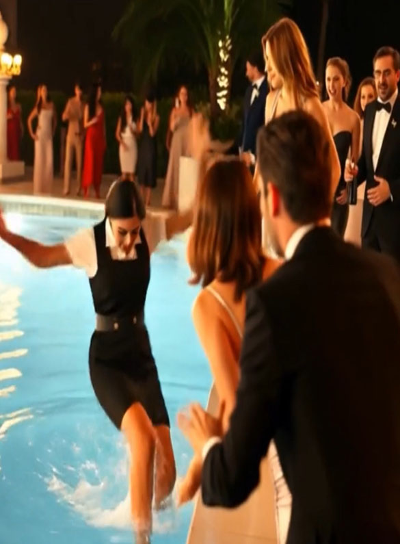 He extended his hand, and she hesitated only for a moment before accepting it. His grip was firm and reassuring as he helped her out of the pool. Ava stood beside him, trying to regain her composure, her dignity slowly returning under the reassuring presence of the millionaire.