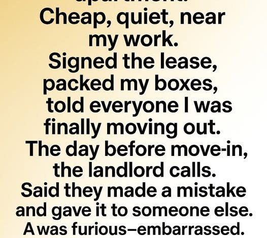 I found the perfect apartment: cheap, quiet, near work. Signed the lease, packed, told everyone I was moving. The day before move-in, the landlord called: mistake, it went to someone else. I was furious, embarrassed, and had to unpack.