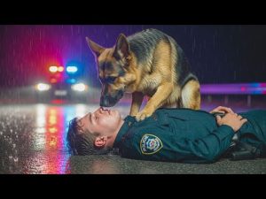 That night, under the thunder and rain, the world went dark—but one German Shepherd refused to leave. And that choice, one act of loyalty, changed everything. Because sometimes the bravest hearts don’t carry guns—they carry scars, and they choose to protect anyway.