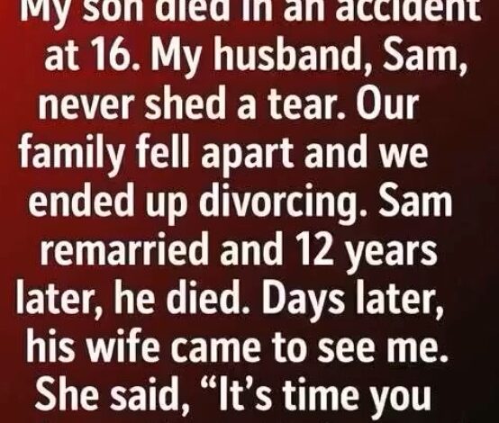 After my 16-year-old son died, my husband Sam remained stoic at the funeral, never crying, while I was consumed by grief. His silence created a chasm between us, leading to our divorce within a year. Sam remarried quickly to Claire, and I resented him, believing he never loved us, carrying that bitterness for twelve years. When