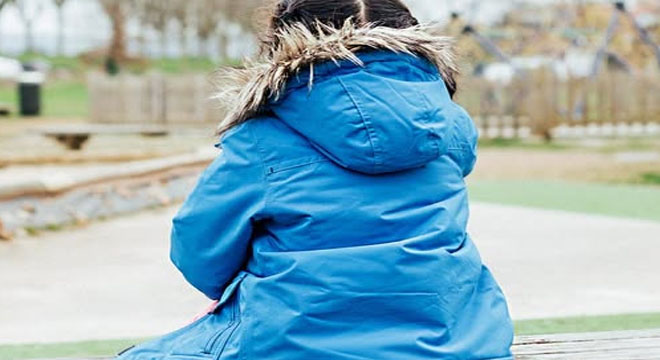 She was small, maybe ten years old, with long dark hair tucked under a faded beanie. She wore a pale jacket that looked too thin for the cooling weather and sat completely still on the bench across from the fountain.