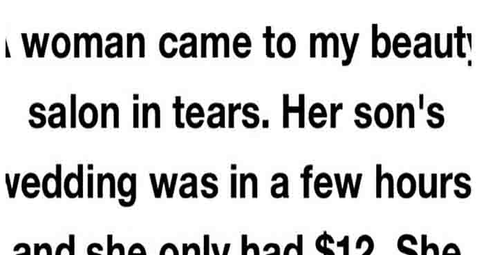 On the morning of her son’s wedding, a woman walked into my salon with tears in her eyes and only twelve dollars in her purse. She looked at me and whispered, “I don’t want to embarrass him with my appearance.”