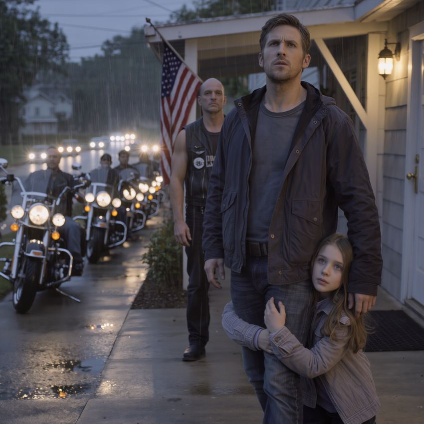 Outside, more than forty motorcycles sat like chrome sentinels. The riders were massive, leather-clad men with insignias that commanded the asphalt. I stepped onto the porch, shielding Lily behind my legs. My hands were trembling, not with fear, but with the sheer gravity of the moment.