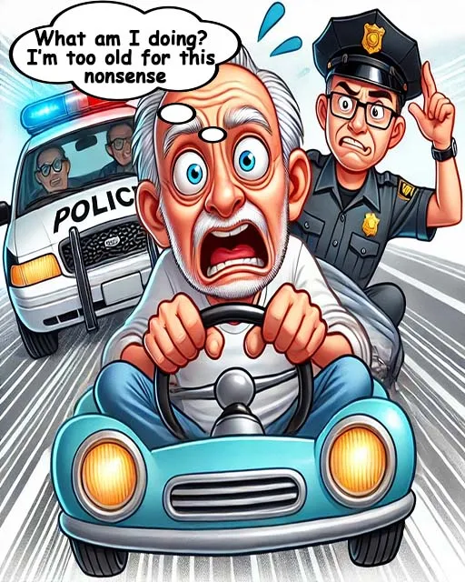 The old man sighed and muttered, “Not again…” but instead of stopping, he hit the gas.