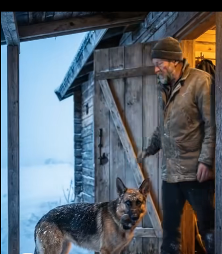 A German Shepherd, black and gold, fur stiff with ice, ribs visible beneath her soaked coat. Her eyes locked onto his—not wild, not aggressive, but focused, calculating, exhausted. In her mouth she held something impossibly small.